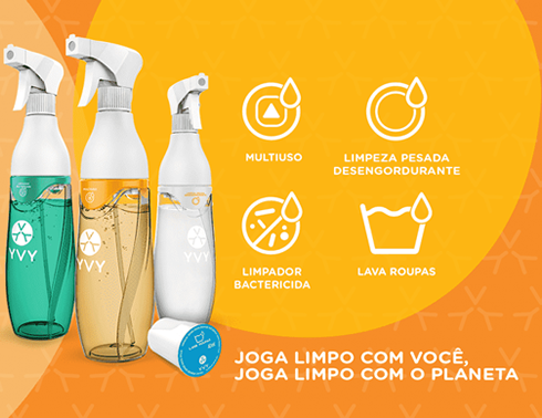 Os produtos da YVY usam ativos e corantes naturais, fragrâncias exclusivas de óleos essenciais e os chamados tensoativos de rota vegetal (eles ajudam a fazer com que os diferentes componentes da fórmula se misturem de maneira homogênea). Isso é algo novo no mercado, que tem sua dinâmica baseada em produtos com petroquímicos, cloro e fosfatos. Nossos produtos, que não usam nada disso, limpam sem sujar, ou seja, não deixam resíduos pelo caminho. Por isso, dizemos que cuidam do que mais importa para você: sua família, sua casa e o planeta. Com suas cápsulas superconcentradas e os borrifadores reutilizáveis, entrega na sua casa apenas o necessário, sem que você leve água para passear. A YVY tampouco gera a emissão desnecessária de gases poluentes porque não participa desse leva e traz de produtos pesados com tanta água, muito menos precisa de uma enorme quantidade de plástico, já que seus borrifadores são permanentes e as cápsulas são reaproveitáveis.